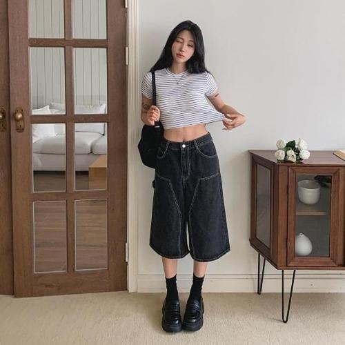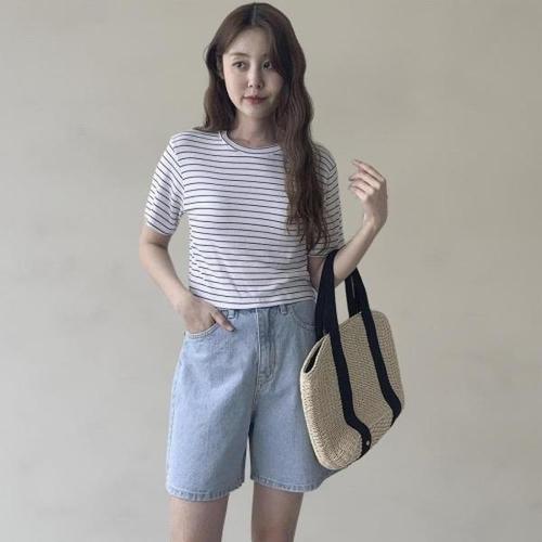 [신상오픈런]|KHT961B|여성용 유넥 크롭 반팔티 - 데일리 레이온 스판 무지 티셔츠_22184293_597559