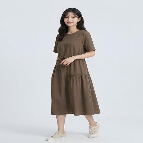르샵 비스코스 레이온 반팔 원피스