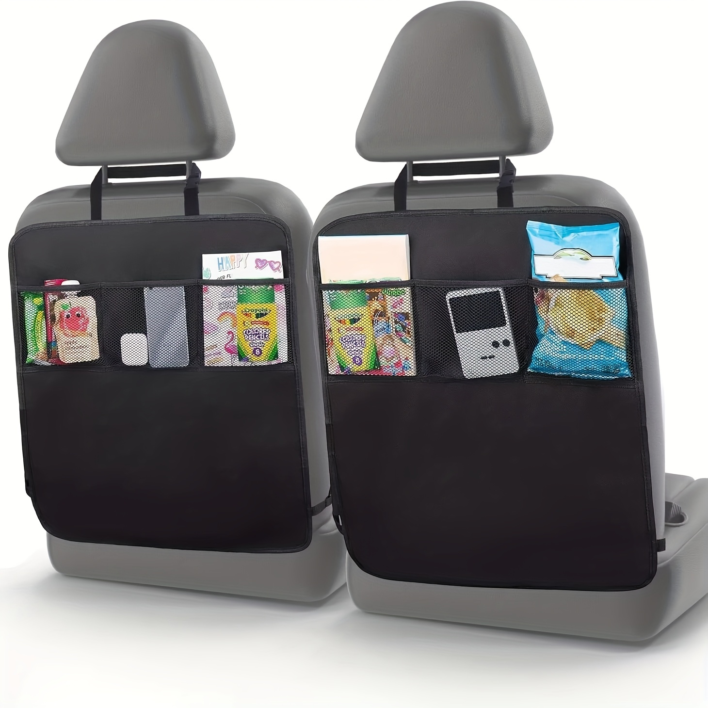 TEMU 메시 수납 공간이 있는 튼튼한 차량용 시트 등받이 보호대 2개 - 세척 용이, 다양한 차종에 적합, 수납 포켓이 있는 차량용 시트 등받이 보호대 - 튼튼한 폴리에스터 킥 매트, 수납을 위한 3개의 포켓이 있습니다.