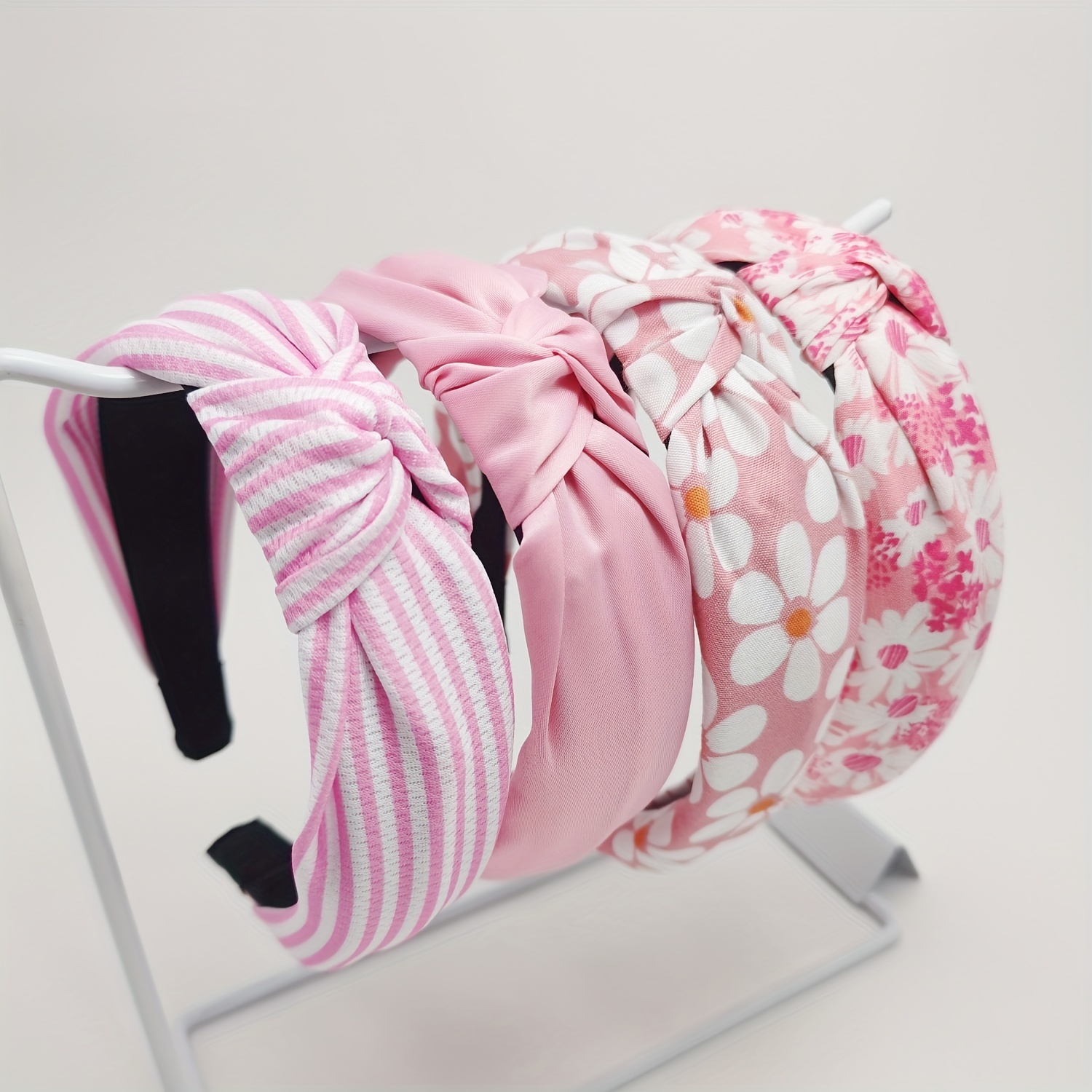 TEMU 4개 세트 여아용 멀티컬러 헤어 액세서리 러브 체크무늬 솔리드 컬러 머리끈 패션 헤어밴드 - 데일리, 페스티벌, 파티용