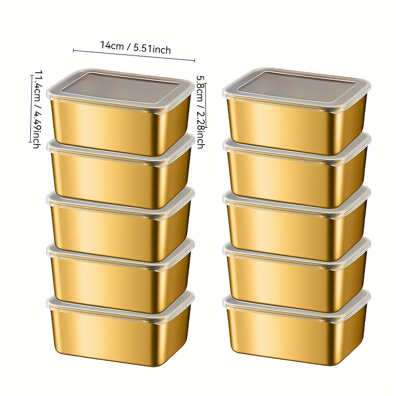 TEMU 두꺼운 밀폐 뚜껑이 있는 스테인리스 스틸 식품 보관 용기 10개 세트. 피크닉, 미니 휴대성, 식사 준비, 냉장고 정리, 주방 필수품에 적합하며, 전기 불필요, 식품 접촉에 안전합니다.