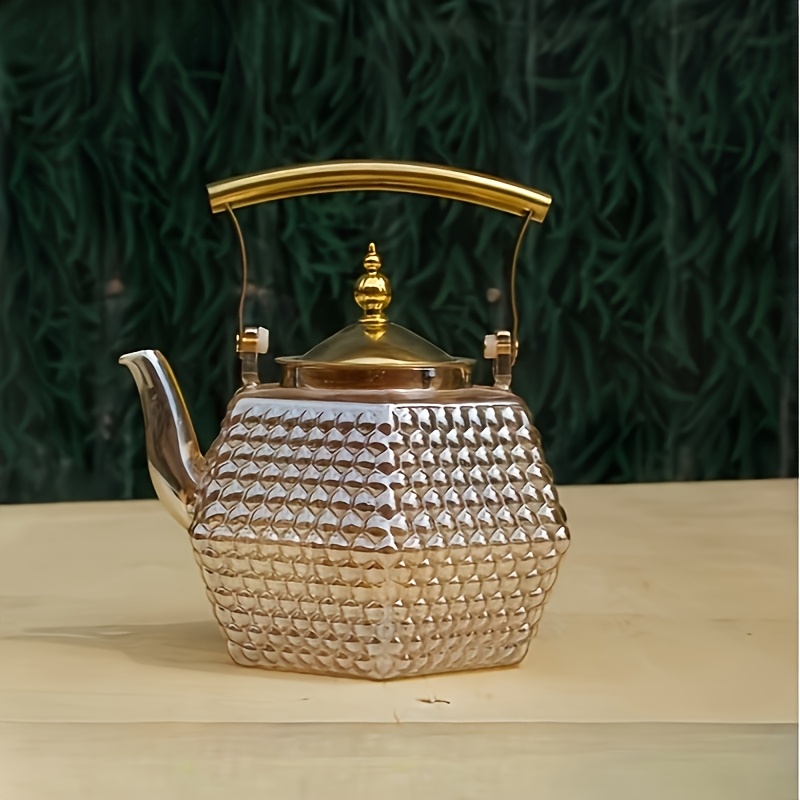 TEMU 고급 육각형 유리 찻주전자, 황금색 테두리와 뚜껑 - 고보로실리케이트, 내열성, 스토브탑이나 카운터탑에서 차를 끓이는 데 완벽함