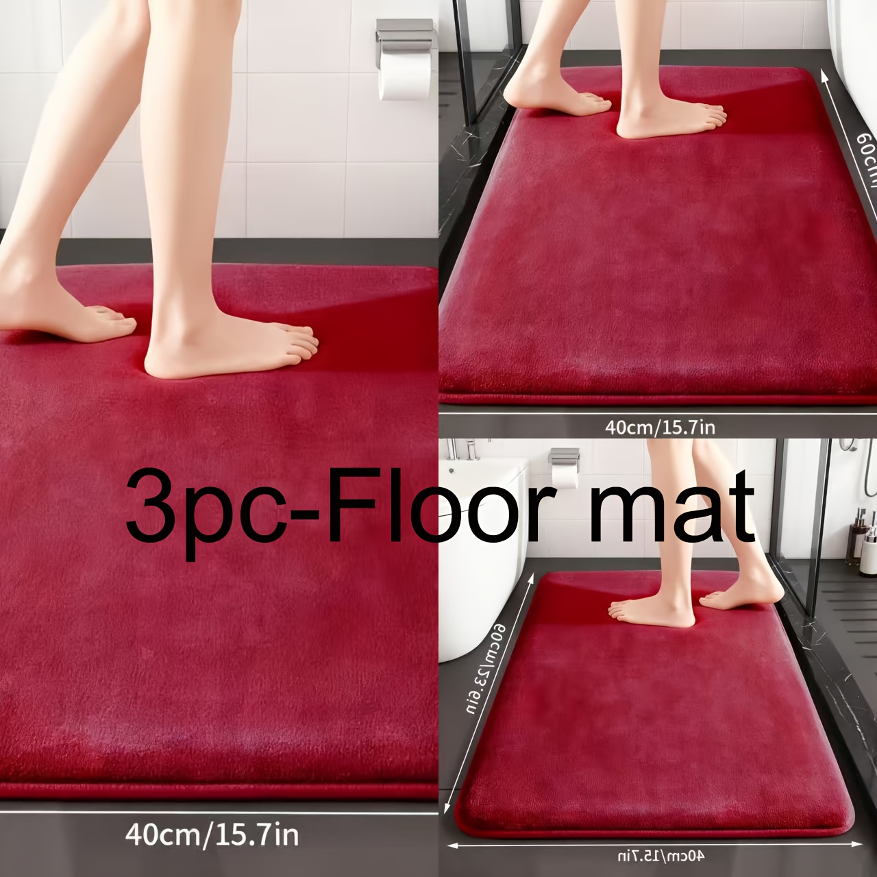 TEMU 미끄럼 방지 욕실 매트 3개 세트, 매우 부드럽고 흡수성이 뛰어난 샤워 매트, 욕실/샤워실, 욕조 바닥 매트, 미끄럼 방지 욕실 매트, 세탁실 카펫, 방 매트, 복도 매트, 휴일 장식, 세탁기 사용 가능, 직사각형 모양
