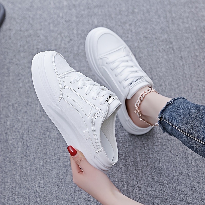 TEMU 여성용 패션 스니커즈, 캐주얼 다용도 플랫폼 신발, 가볍고 편안한 통기성 운동화, 로우탑, 솔리드 컬러, 레귤러 토, 패브릭 안감, 레이스업 클로저, MD 솔 소재, 여성 신발