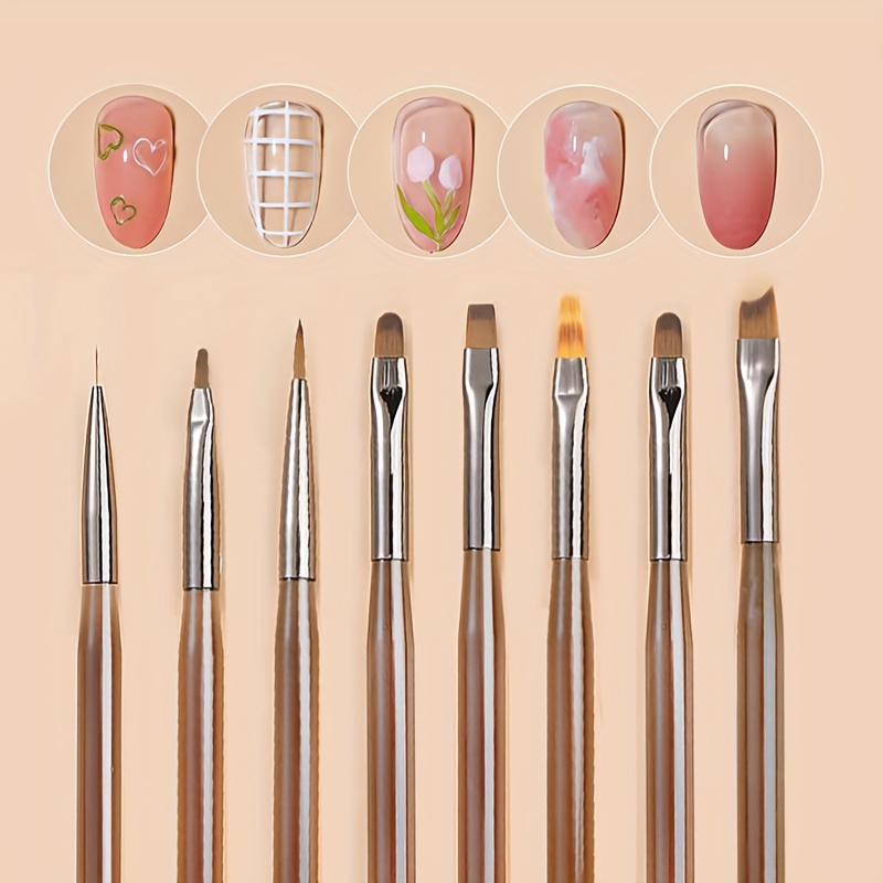 TEMU 젤 네일, 전문 매니큐어 도구, 네일 폴리쉬, 아크릴 레진을 위한 8개의 네일 브러시 세트, DIY 페인팅 및 워터컬러 네일 아트 장식에 적합합니다.