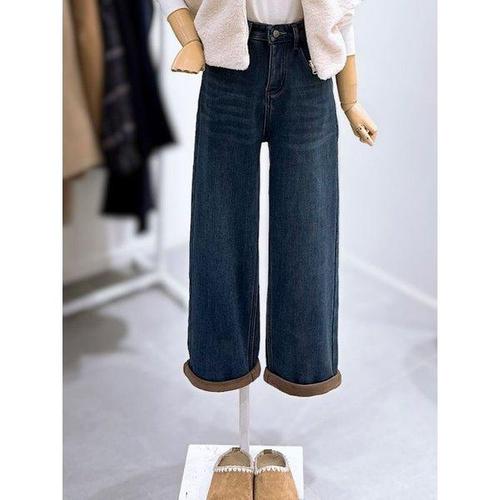 엘블로썸 여성 겨울 기모 히든밴드 스판좋은 와이드 청바지