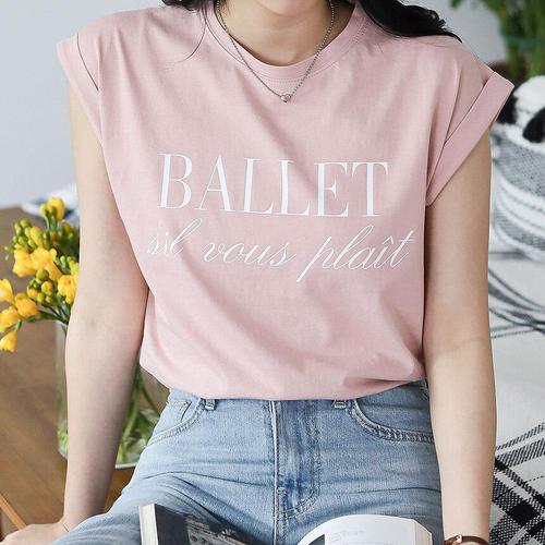 [옷자락]여자 롤업 캡소매 레터링 여름나시 실켓 소프트 티셔츠