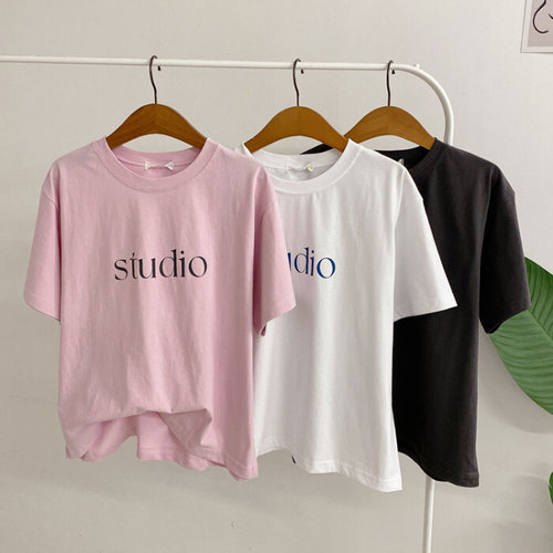 [옷자락] 여성 레터링 실켓 반팔 티셔츠 베이직핏