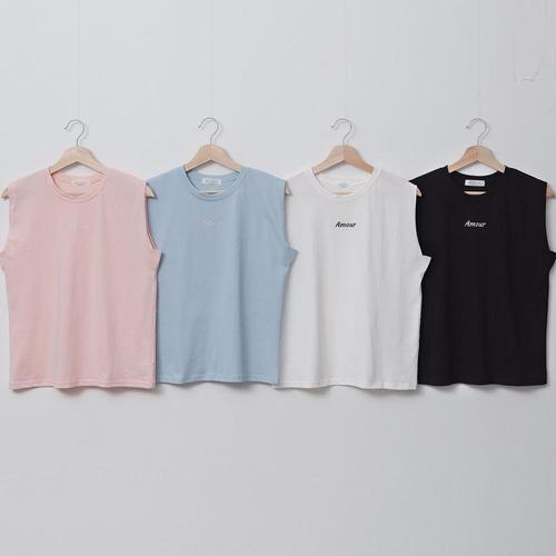 [옷자락] 여성 자수 레터링 소프트 실켓 민소매 티셔츠