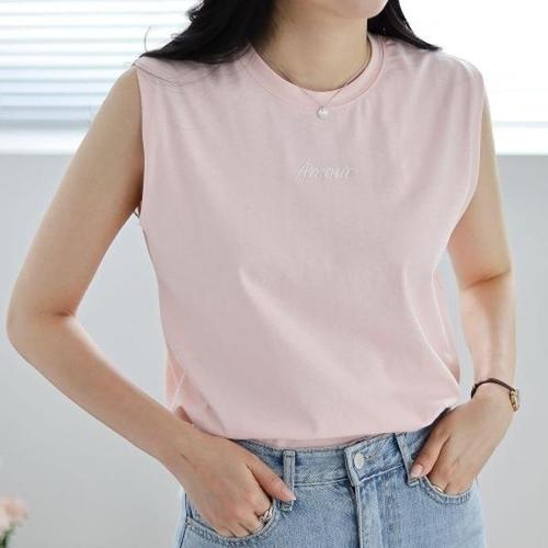 여성 자수 레터링 소프트 실켓 민소매 티셔츠