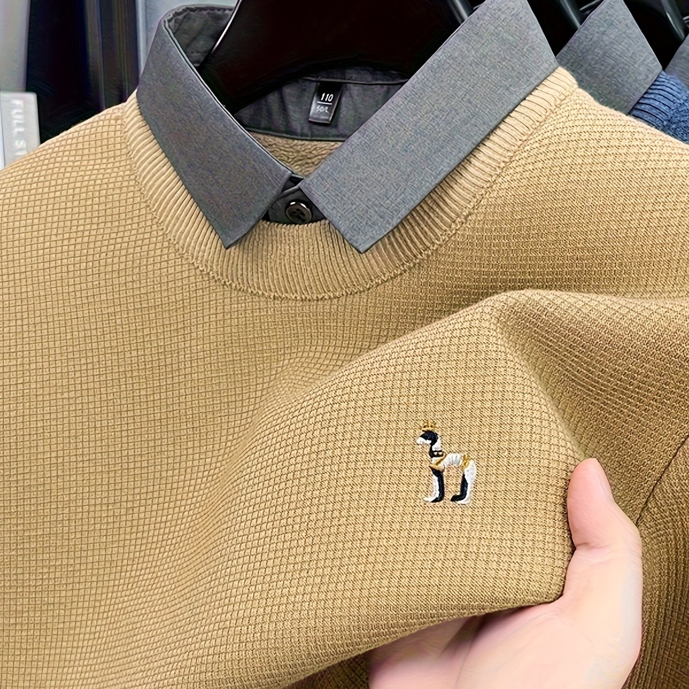 TEMU 남성용 투인원 니트 셔츠 칼라 - 보풀 방지 보온 레이어드 아웃핏, 슬림핏 홈웨어, 데이트, 야외 및 특별 이벤트용 | 멀티펑셔널 컨버터블 스웨터 (결혼식, 해변) - 가을/겨울용|요가|요가복|남자셔츠