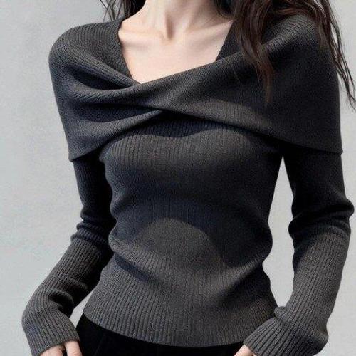 TEMU 가을-겨울 유니크 레이지 스타일 솔리드 컬러 V넥 소프트 스웨터 루즈 스위트 베르사틸 탑