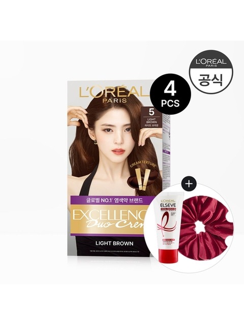 [로레알파리] [SSG 단독구성/나눠 쓰는 새치염색]로레알파리 엑셀랑스 듀오 크림 4개 세트 [증정]TR5 헤어팩50ml + 스크런치(랜덤)