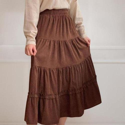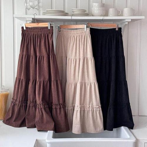 [다잇템_패션]여성용 로맨틱 치마 롱 티어드 코듀로이 가을용