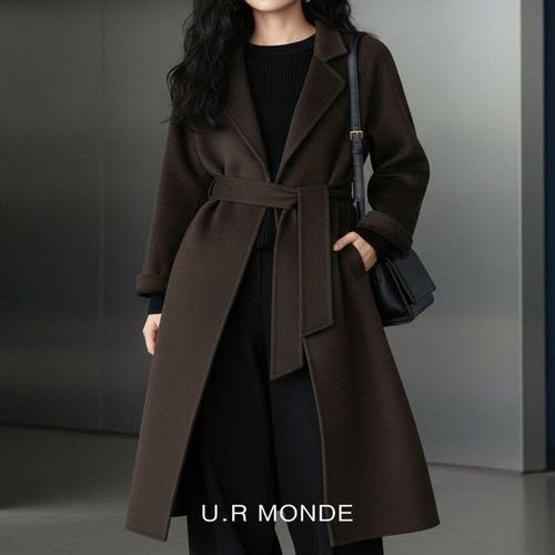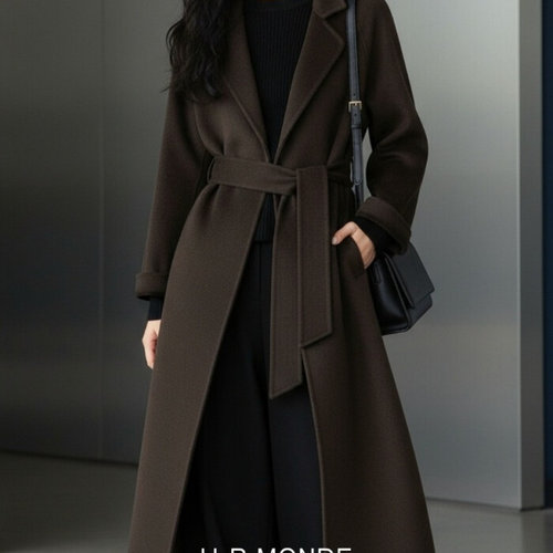 [자체제작/FREE] 울100% 우아한 숄카라 벨트 핸드메이드 롱 코트 로브코트