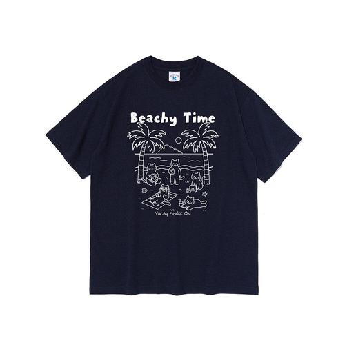 [로아드로아]비치타임 캣 크루 반팔 티셔츠 (네이비)