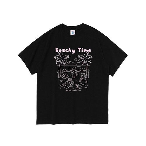 [로아드로아]비치타임 캣 크루 반팔 티셔츠 (블랙)