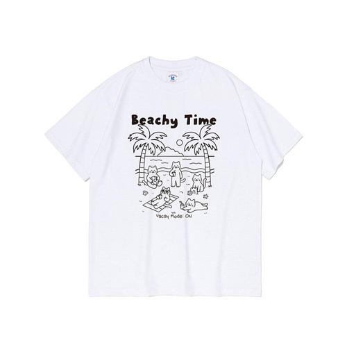 [로아드로아]비치타임 캣 크루 반팔 티셔츠 (화이트)