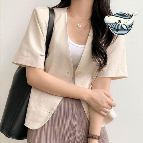 여성 린넨 버튼 크롭 반팔자켓 여름 정장 자켓