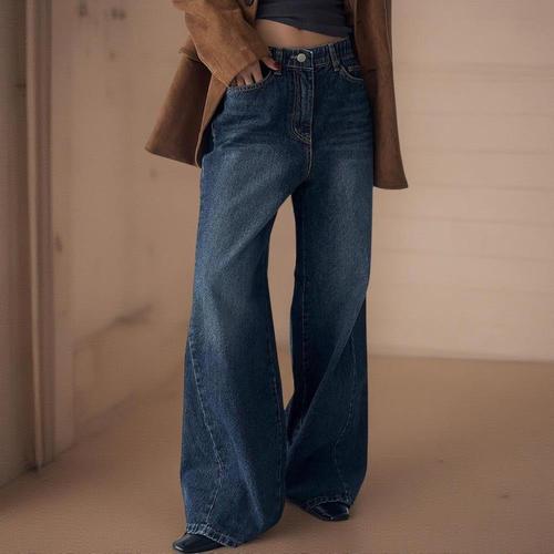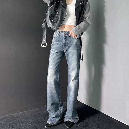SAHINER 봄가을 여성용 하이웨이스트 부츠컷 와이드 빈티지 롱 데님팬츠 BNZ38