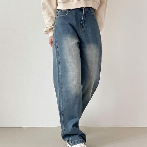 [미라클세븐]여성 루즈핏 워싱 로우라이즈 청바지