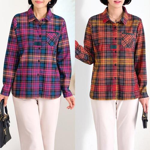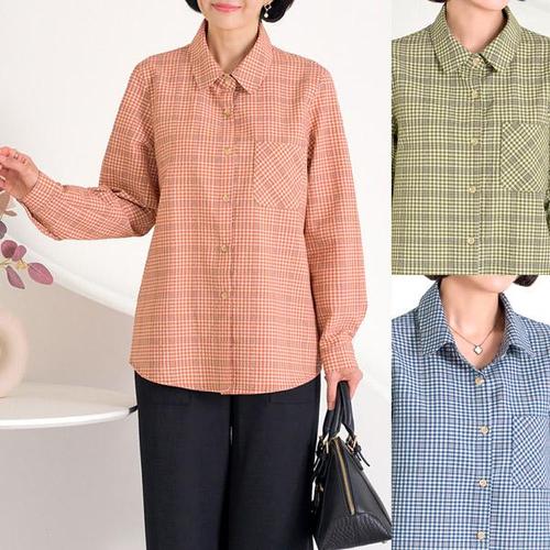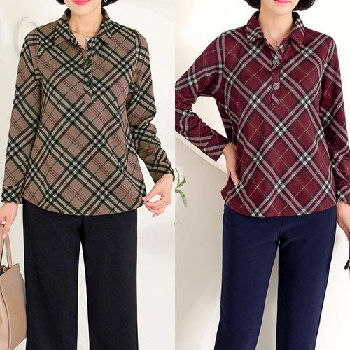 [엄마옷 로즈맘] 민홍체크와플카라블라우스