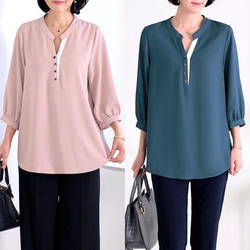 [엄마옷 로즈맘] 만소배색브이넥블라우스