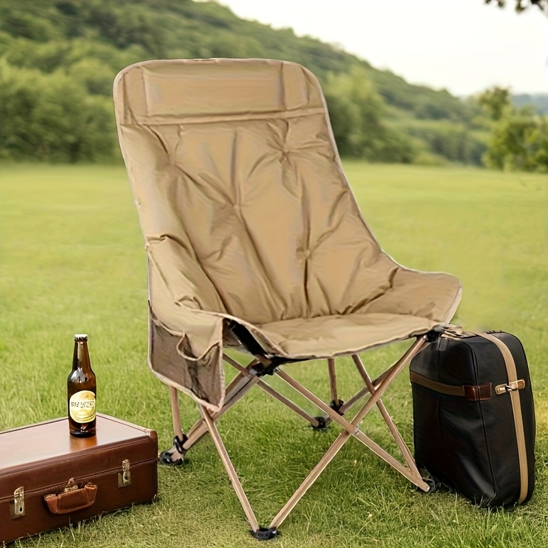TEMU 휴대용 접이식 등받이 달 의자 - 내구성 있는 옥스포드 원단, 철합금 프레임, 야외 캠핑, 해변, 낚시에 이상적