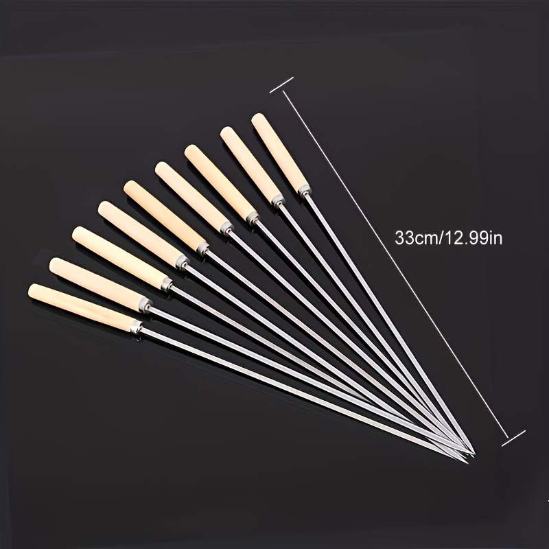 TEMU 10개 바베큐 꼬치, 다기능 스테인리스 스틸 꼬치, 나무 손잡이 스테인리스 스틸 꼬치, 바베큐 바늘, 닭가슴살 및 고기 꼬치용 야외 요리 바베큐 용품