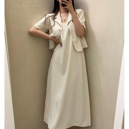 [패션시그널]반팔자켓 + 끈나시롱원피스 세트 A36B1A