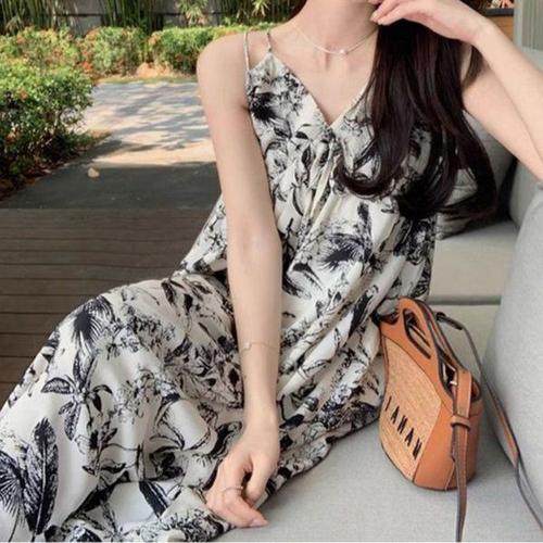 [에이치플러스몰]여성 바캉스룩 여리핏 플로럴 비치 나시 롱원피스