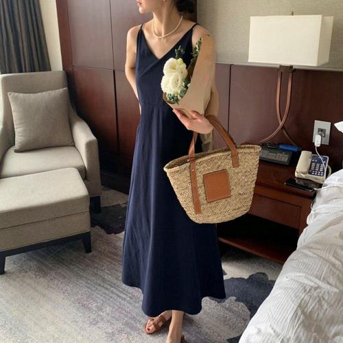 [에이치플러스몰]여름 여자 데일리 니트 휴양지 클래식 끈나시 롱 비치