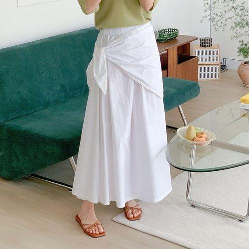 [옷자락] 여자 레이어드 매듭 랩치마 빅사이즈 면 밴딩 롱스커트