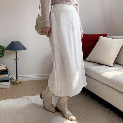 [신상오픈런]여성 사무실 스타일 일상용 찰랑이는 레이온 랩 롱스커트