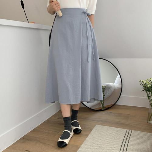 데일리앤 봄 여름 무지 롱 에스닉 페이즐 플레어 랩스커트 2type