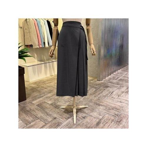 [에이비에프지]AOZ5QS36G 플리츠 벨트 랩 롱 스커트