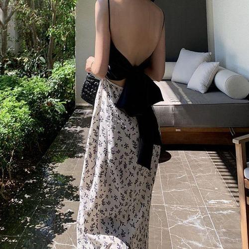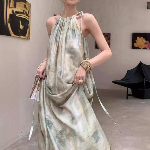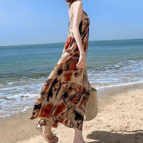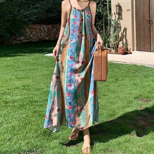 [에이치플러스몰]나시 휴가 원피스 휴양지 슬립 여성롱 끈나시 비치 무