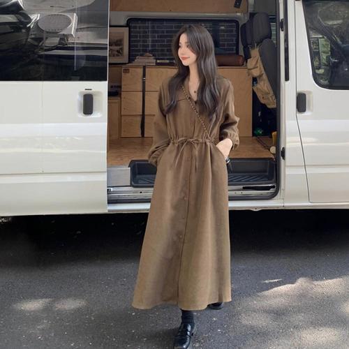 여자 셔츠원피스 골덴 투포켓 가을 롱원피스_4