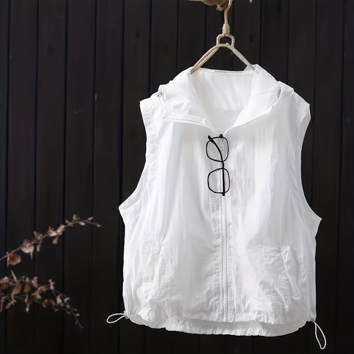 TEMU 여성용 루즈핏 민소매 지퍼업 후드 가벼운 베스트
