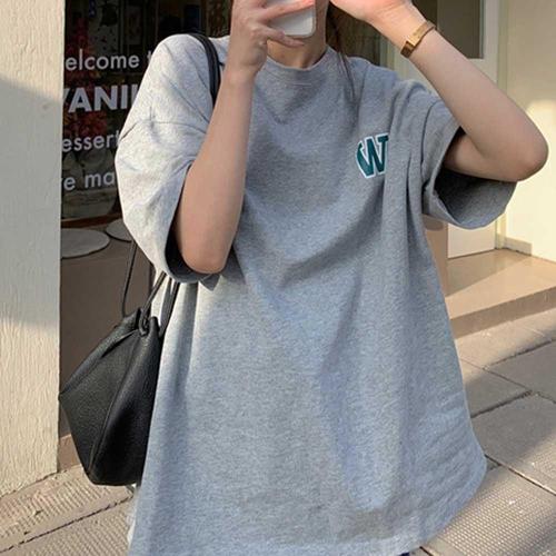 롱티셔츠 여자여름반팔티 여성 여성티셔츠 루즈핏 WFKPDAF