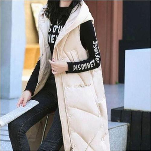 오리털 롱 덕다운 경량 패딩 후드 조끼 베스트 베이지
