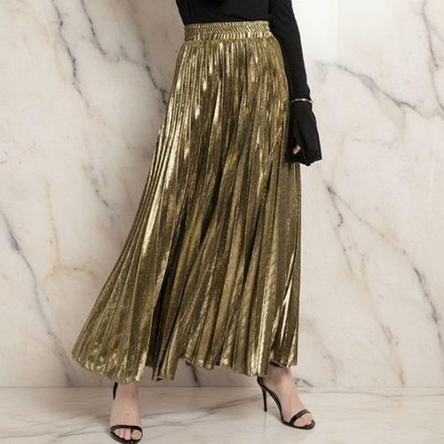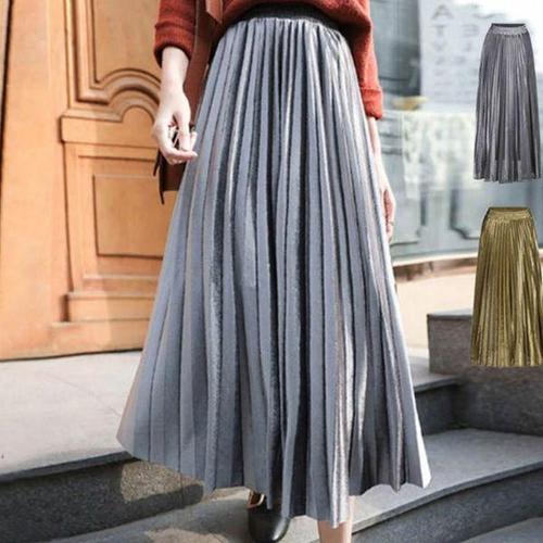 [신상오픈런]여성 이브닝 메탈릭 플리츠 롱 스커트