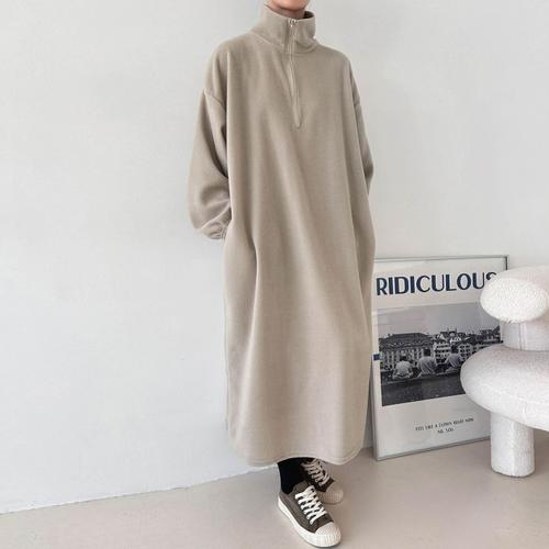 [다잇템]여자 큰사이즈 하프집업 후리스원피스 롱원피스