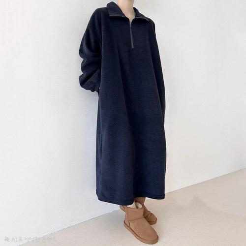 [더바디시크릿]후리스 반집업 롱 원피스 겨울 플리스룩