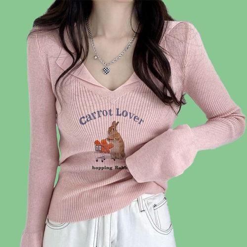 [모노무드]LMO 레이디스셔츠칼라 V라인 뜨개탑 탑 베스트 봄철 오텀 롱슬리브 상의 핑크
