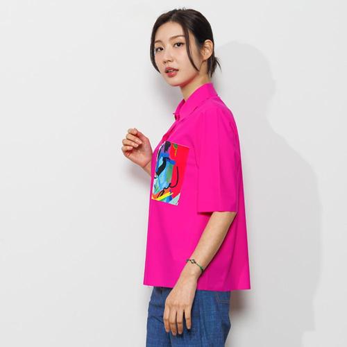 [브이와이][VY] 여자 색상 카라넥 빅사이즈 박스핏 SS 롱 핫핑크 셔츠_16259606_588847
