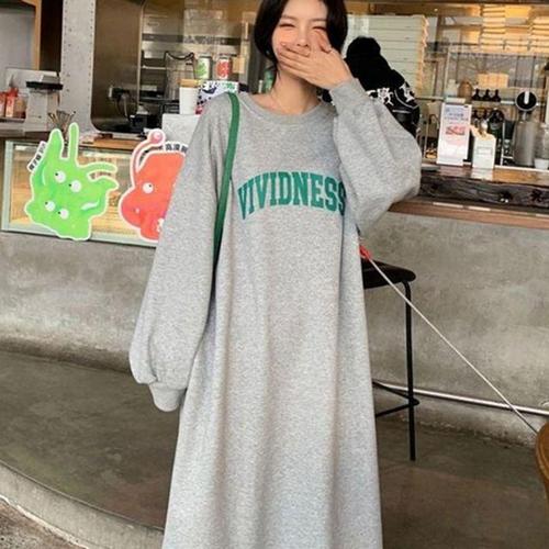 기모 레터링 맨투맨 롱 티 원피스 WFGSZJ5