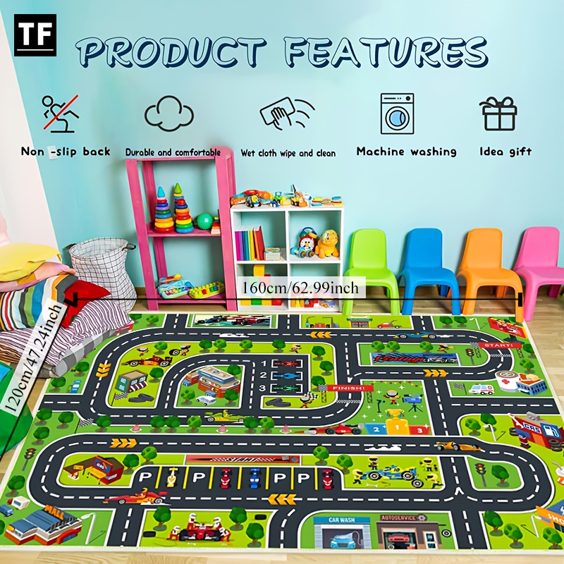 아기 놀이 매트 크롤링 매트 만화 활주로 카펫 주차장 도로 게임 매트 홈 미끄럼 방지 및 먼지 방지 발 매트 아기 장난감