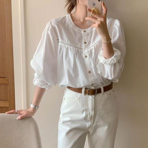 [랄라모션]바비 핀턱주름 레이스 블라우스 2Color (LLM0006)