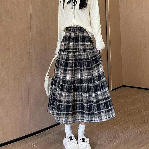 [랄라모션]윈터 체크 밴딩 플레어스커트(llm0453)